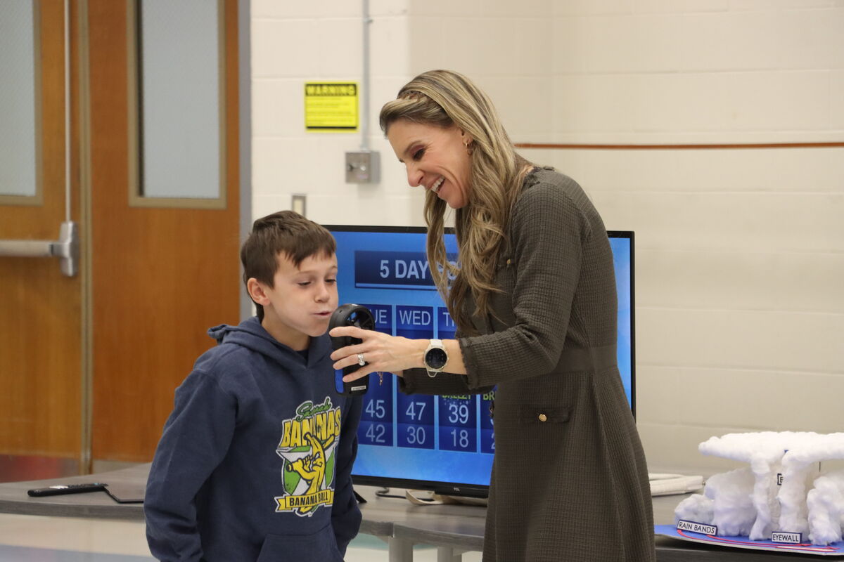 Thomas J. Lahey Elementary School: Emmy Award–winning meteorologist Samantha Augeri brought the weather to life for TJL students with her high-energy, hands-on demonstrations using real forecasting tools and interactive experiments. Students even stepped into the role of meteorologists themselves, reporting the weather and seeing their forecasts come to life on the big screen.